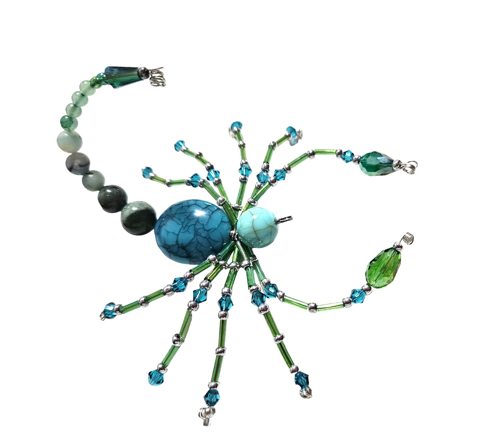 Beaded Scorpion. Scorpion. Scorpion Ornament. Scorpion Decor. Turquioise Silver Beads Arachnid