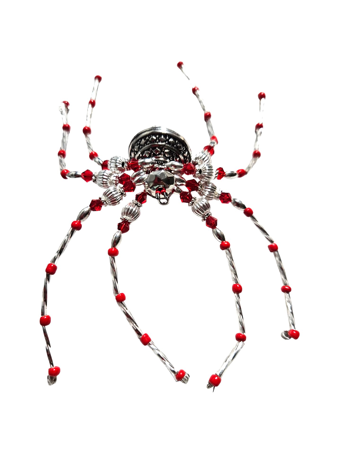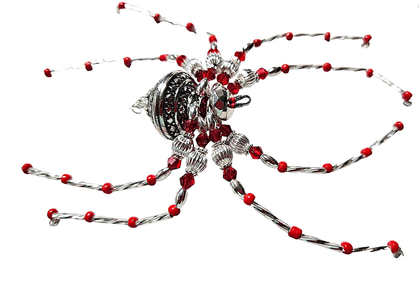 Beaded Spider. Spider. Spider Ornament. Spider Decor. Red Silver. Christmas Spider