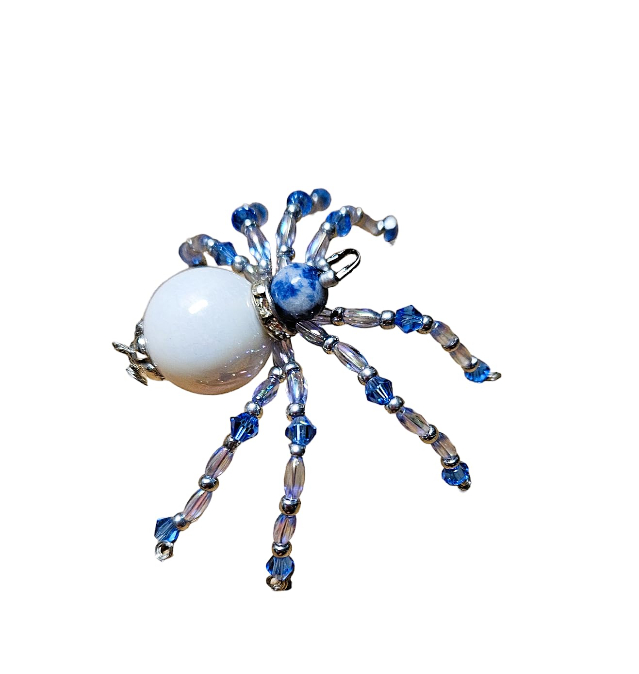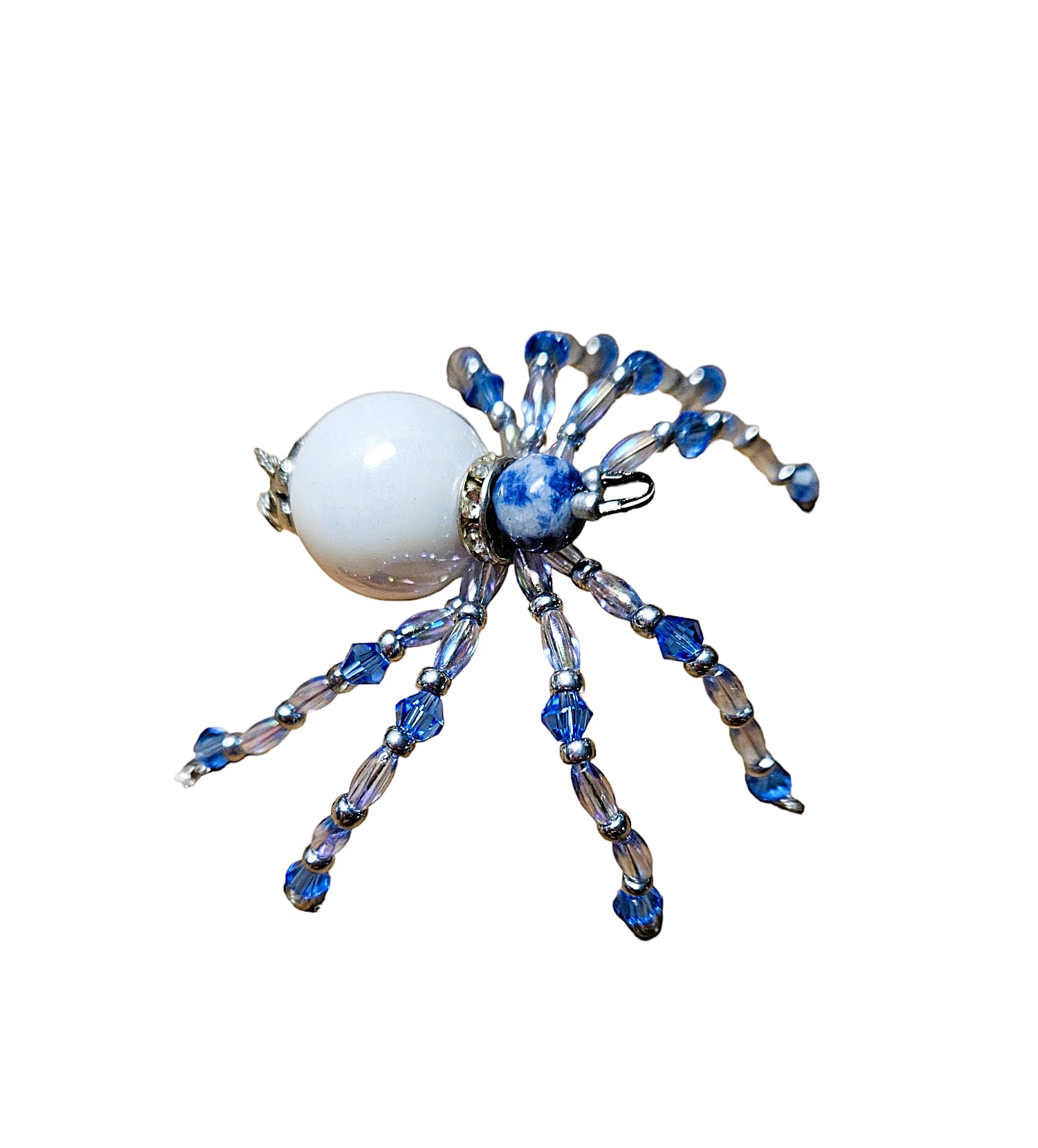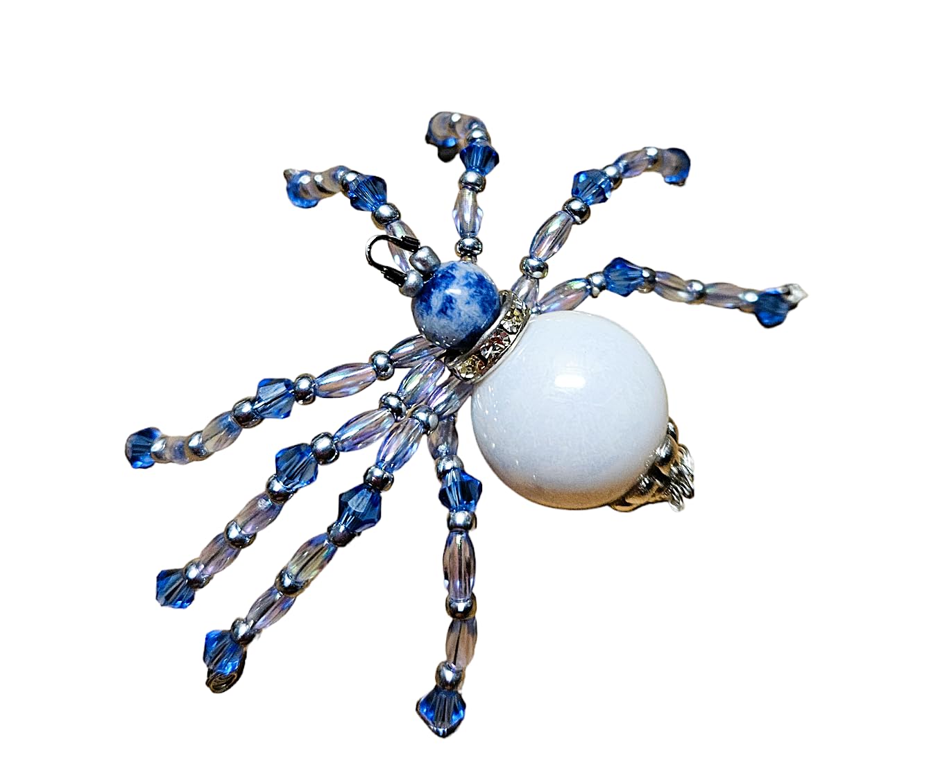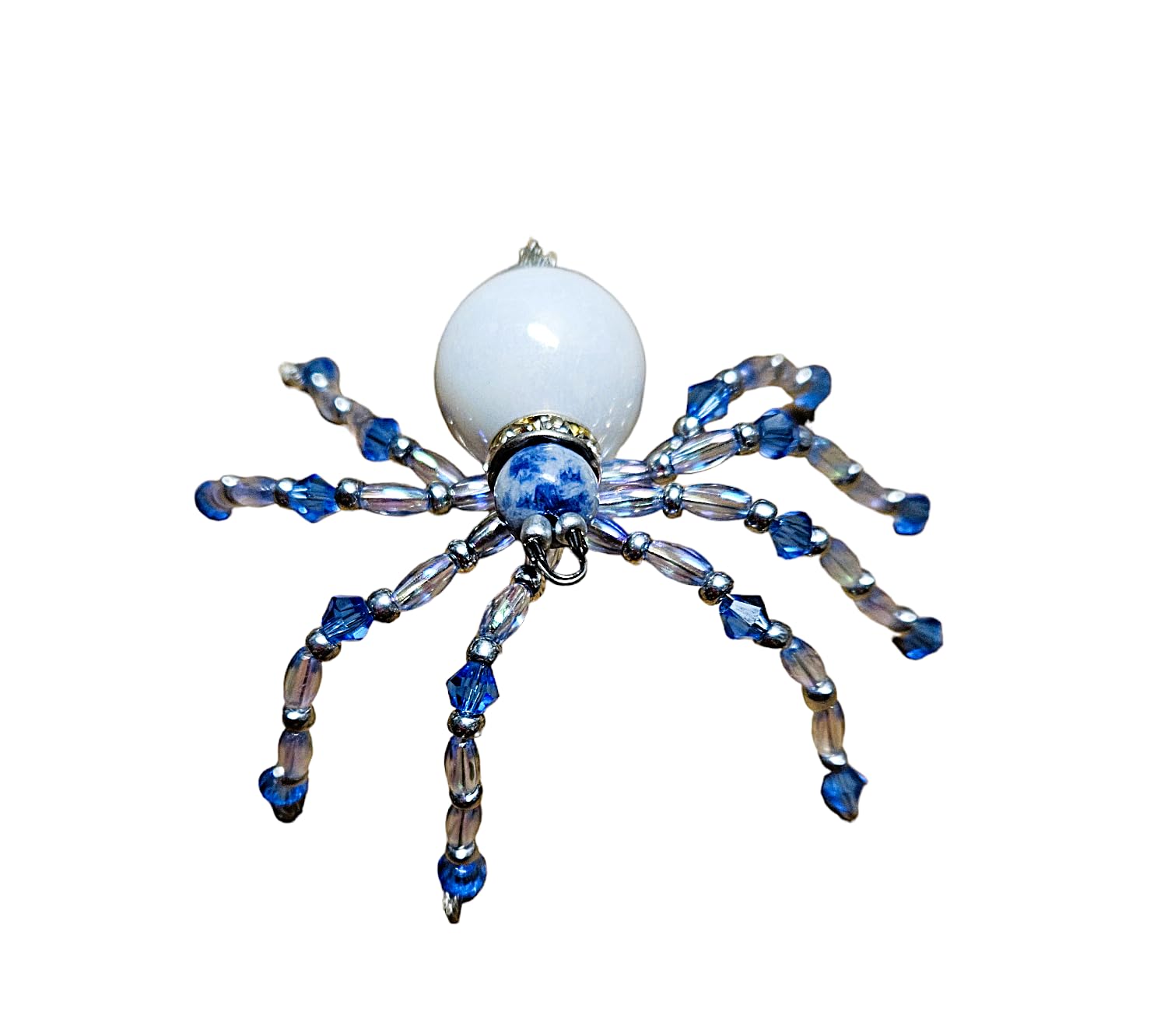 Beaded Spider. Spider. Spider Ornament. Spider Decor. White Blue Silver. Christmas Spider