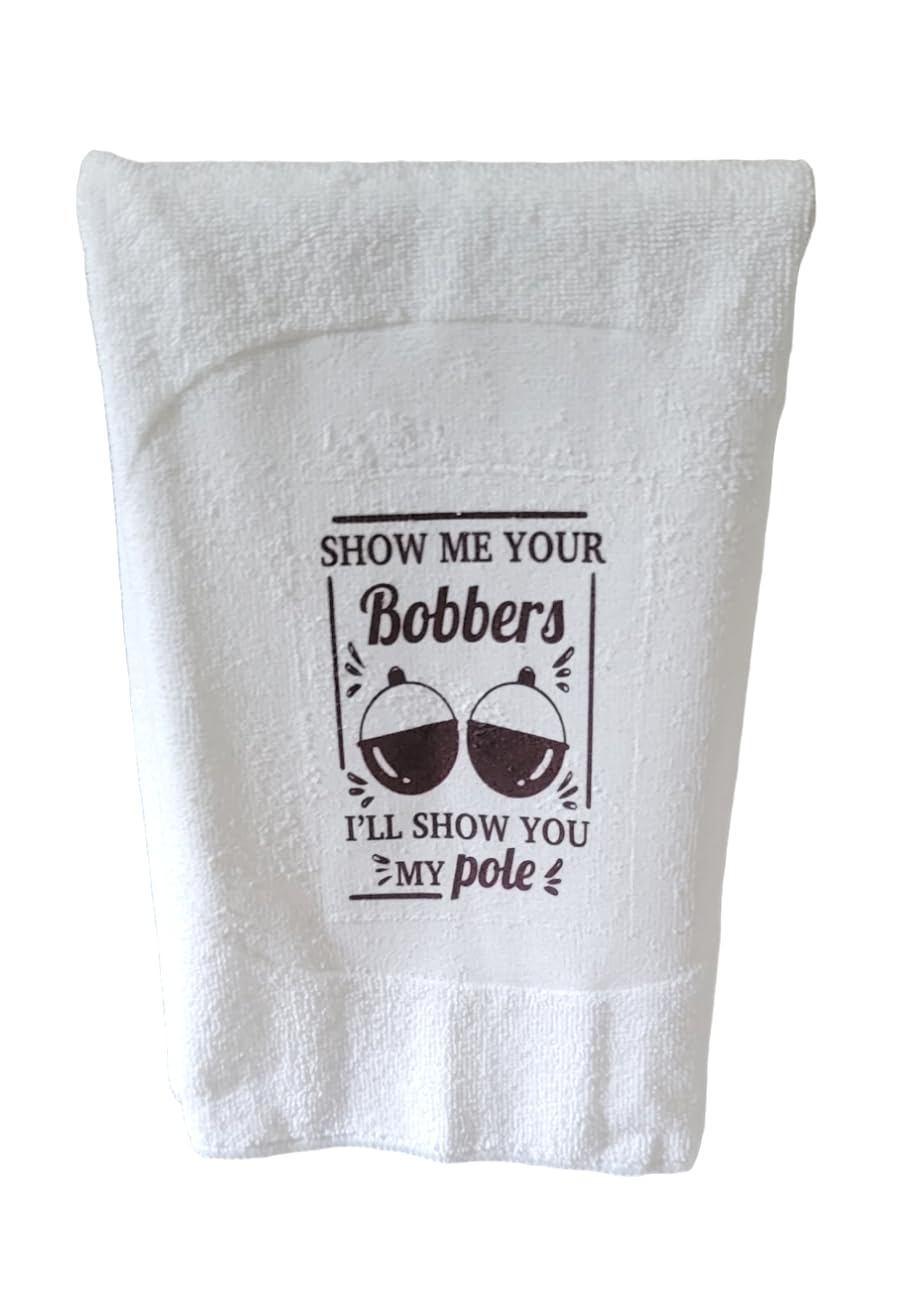 Fishing Hand Towel. Hand Towel. Show Me Your Bobbers ... I'll Show You My Pole. Fishing Gift. Gag Gift. Towel. Fish Towel.