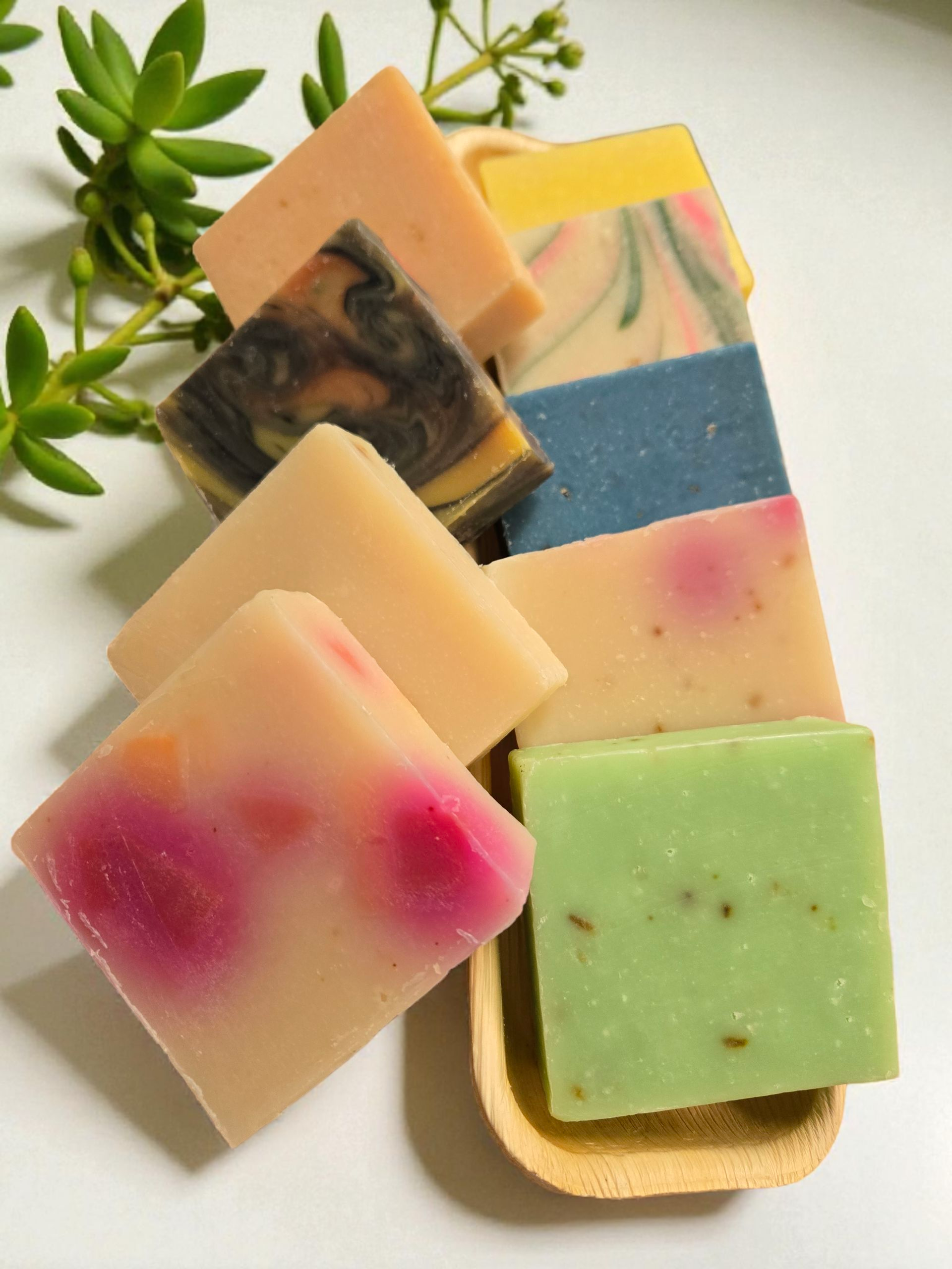Discover our collection of handcrafted artisan soaps, meticulously made in small batches using premium natural ingredients. Each of our nine distinctive varieties offers unique benefits—from soothing lavender and invigorating citrus to luxurious moisturizing blends. Paired with our exfoliating soap scrubs, these handmade creations gently cleanse while nourishing your skin. Perfect for daily indulgence or thoughtful gifting, our soaps combine traditional craftsmanship with quality ingredients for an elevated bathing experience.