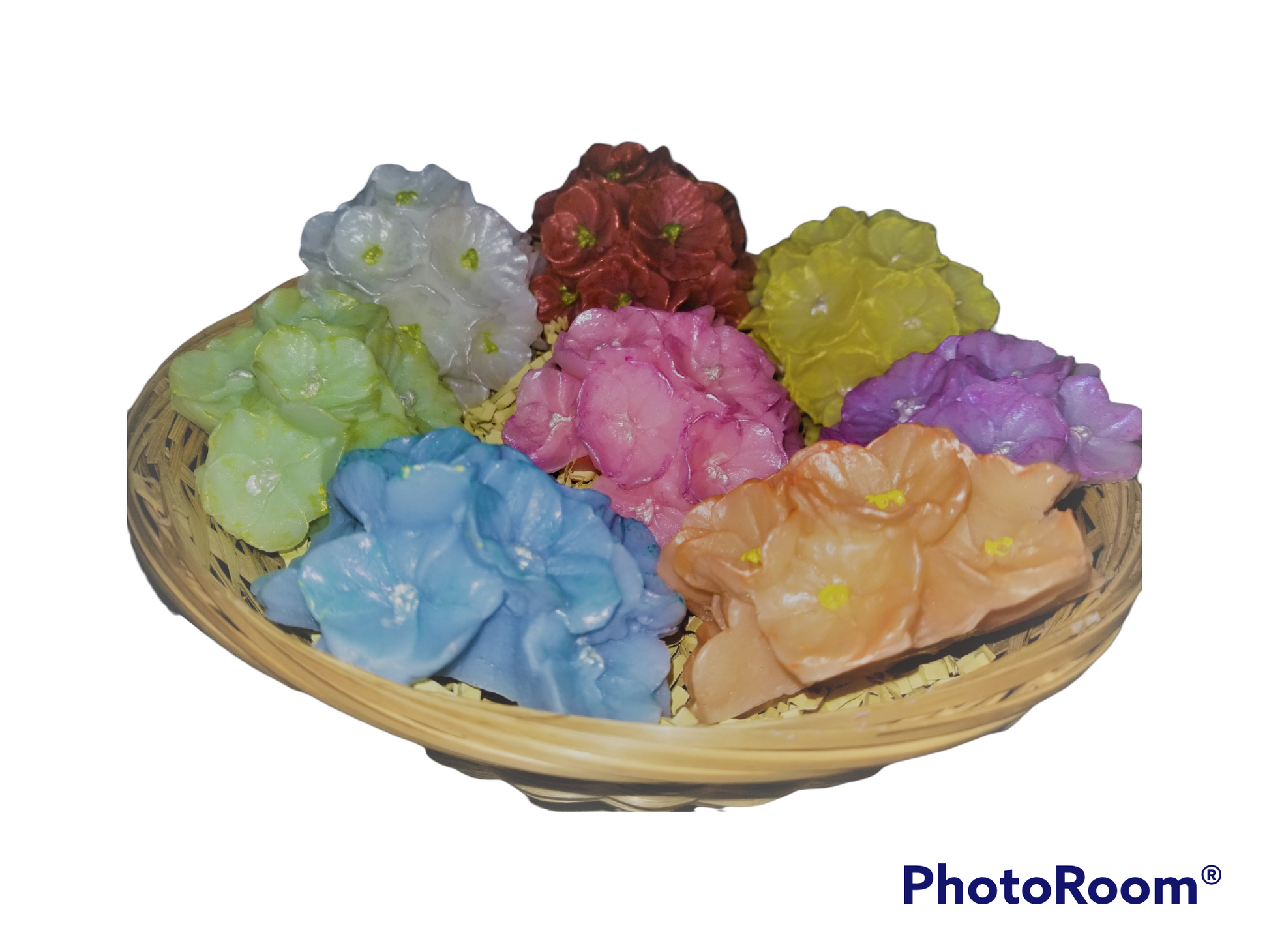 Hydrangea Flower - Basket contains 8 Full Soap Size Hydrangea Flowers - Soap