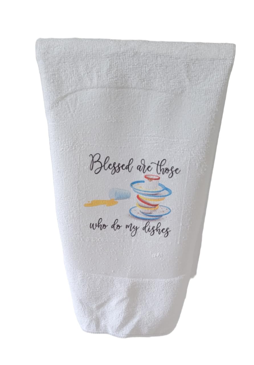 Kitchen Hand Towel. Hand Towel. Gift. Gag Gift. Funny Print. "Blessed Are Those Who Do My Dishes"