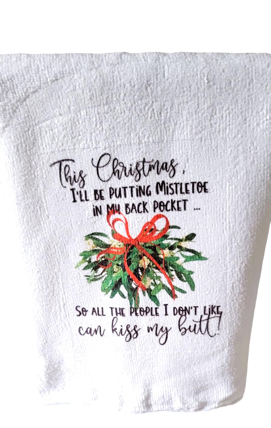 Kitchen Hand Towel. Hand Towel. Gift. Gag Gift. Funny Print. "This Christmas, I'll Be Putting Mistletoe In My Back Pocket...So All The People I Don't Like Can Kiss My Butt!"