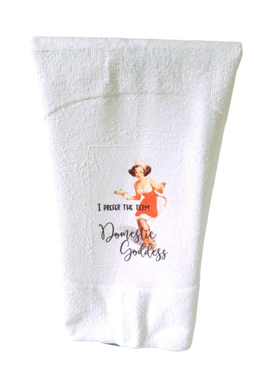 Kitchen Hand Towel. Hand Towel. Gift. Gag Gift. Vintage Print. "I Prefer The Term Domestic Goddess"
