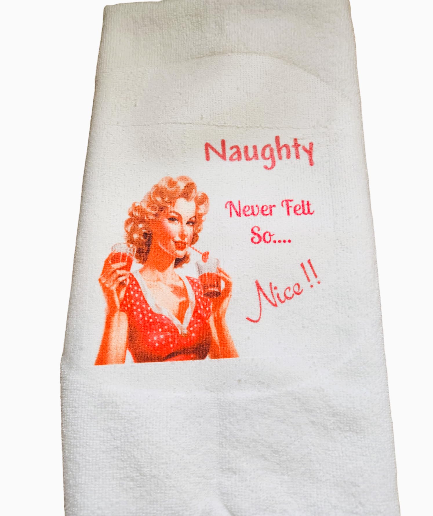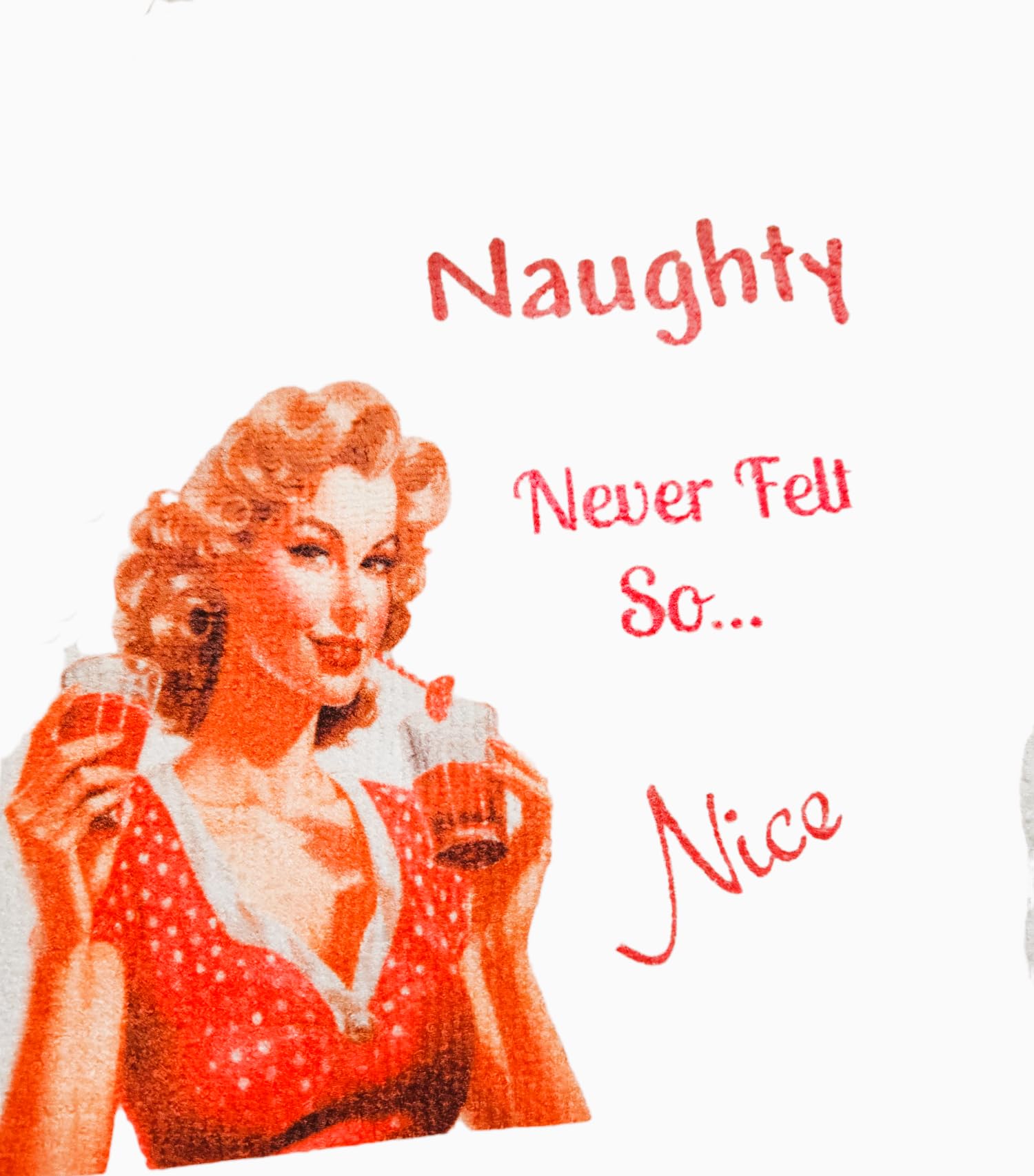 Kitchen Hand Towel. Hand Towel. Gift. Gag Gift. Vintage Print. Naughty Never Felt So Nice. Retro. 1950s Woman.