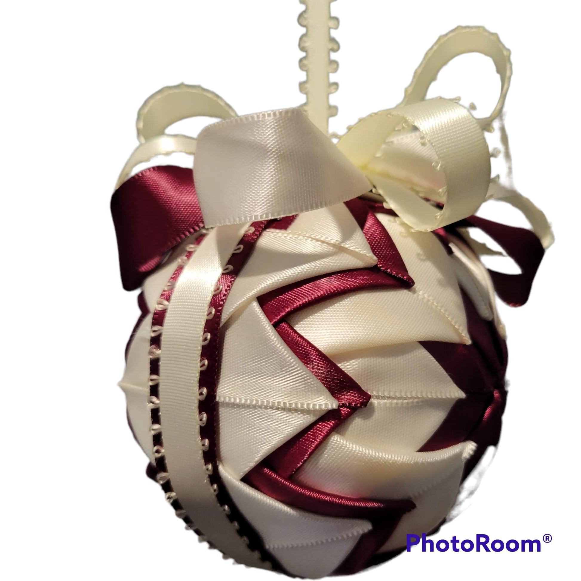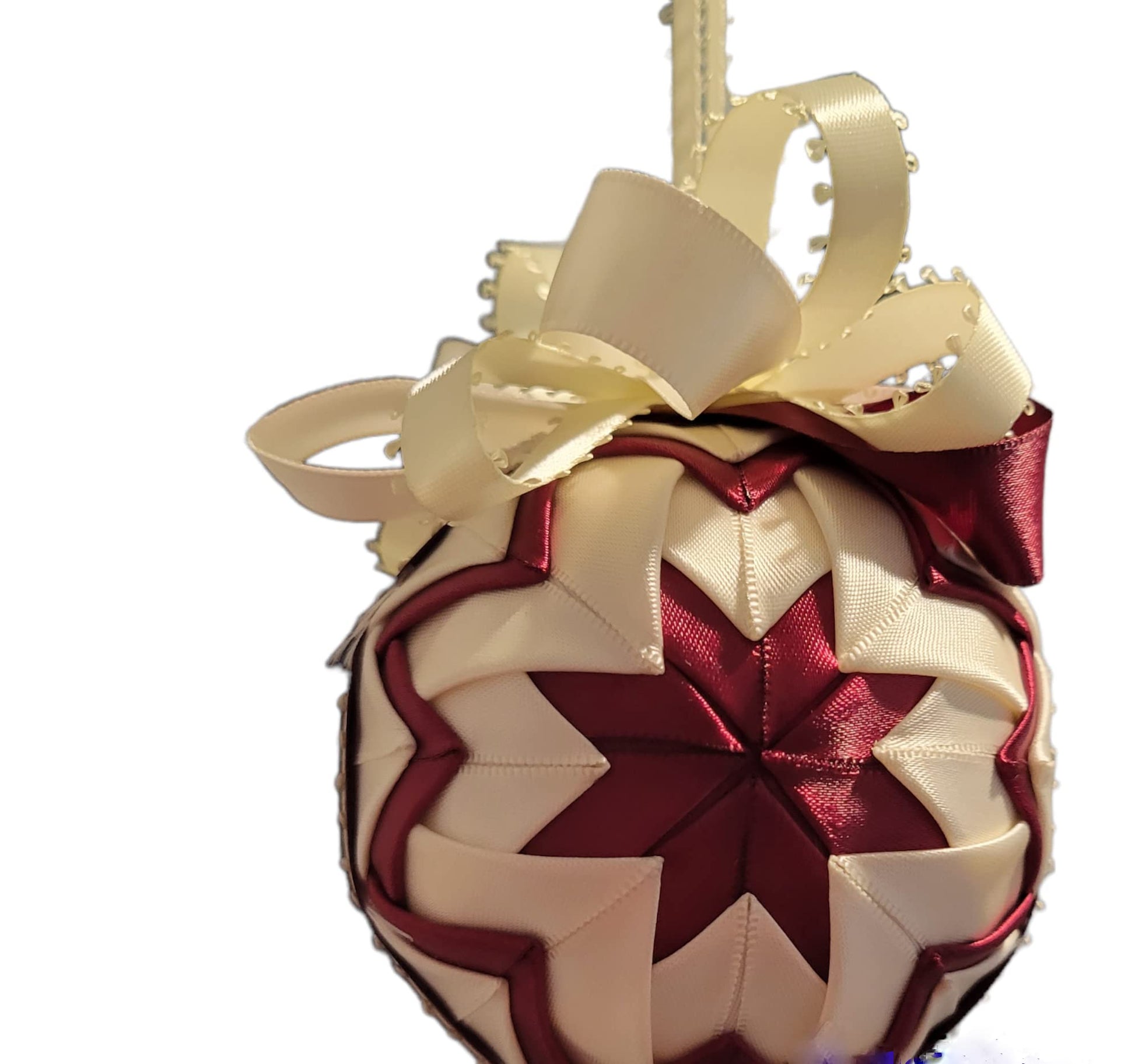 Ornament. Fabric Quilted Ornament. Christmas Ornament. Holiday Ornament. Burgundy and Ivory Fabric