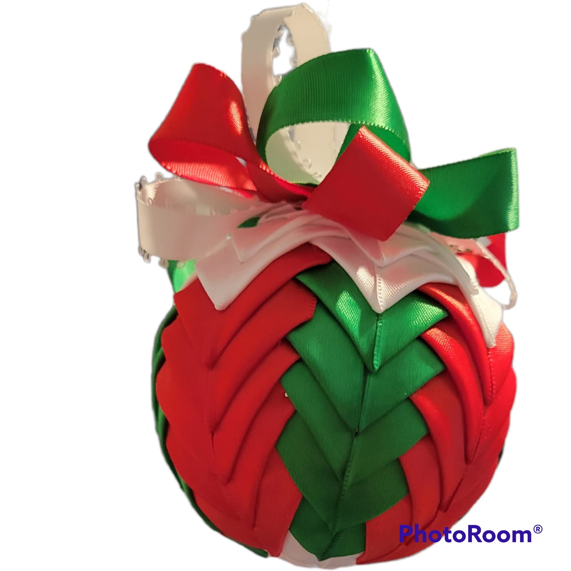 Ornament. Fabric Quilted Ornament. Christmas Ornament. Holiday Ornament. Red Green White Cascade