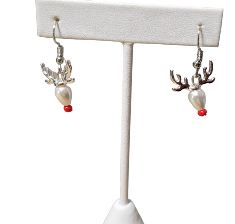 - Fashion Earrings. Costume Jewelry. Reindeer. Christmas Earrings. Holiday Earrings. Winter. Pearl Beads. Antlers